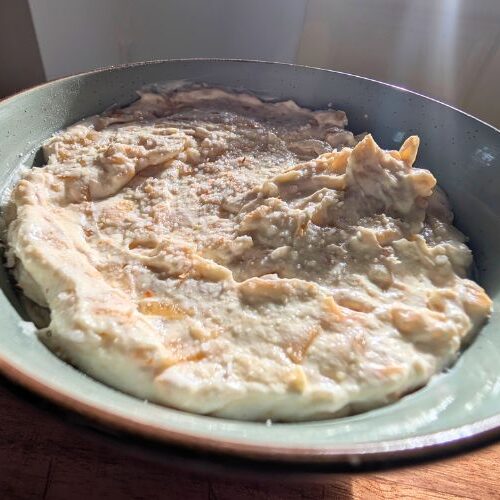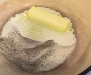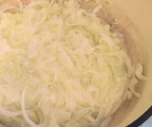 • Scrape the onions into the melted butter (do not cover the casserole dish)