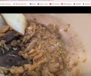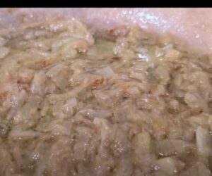 • Some of the oniony goodness will accumulate on the sides and the bottom, make sure you scrape all of this including any butter along with your caramelized onions into a mixing bowl.