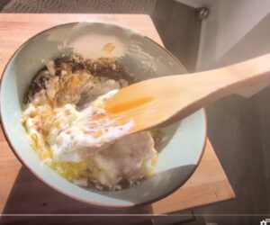 • Add the 1/4 Tsp onion powder and the 8 Oz. of sour cream and mix it all together